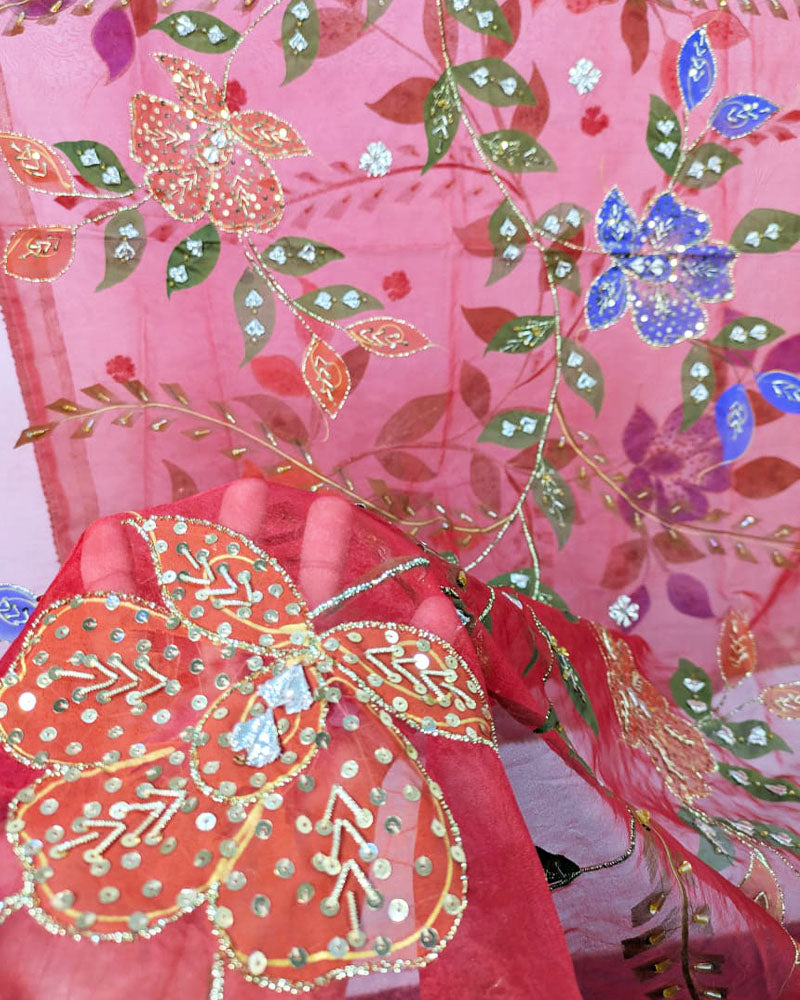 Fancy Organza With Oil Paint, Gotta & Stone Work Dupatta (Ready To Wear)