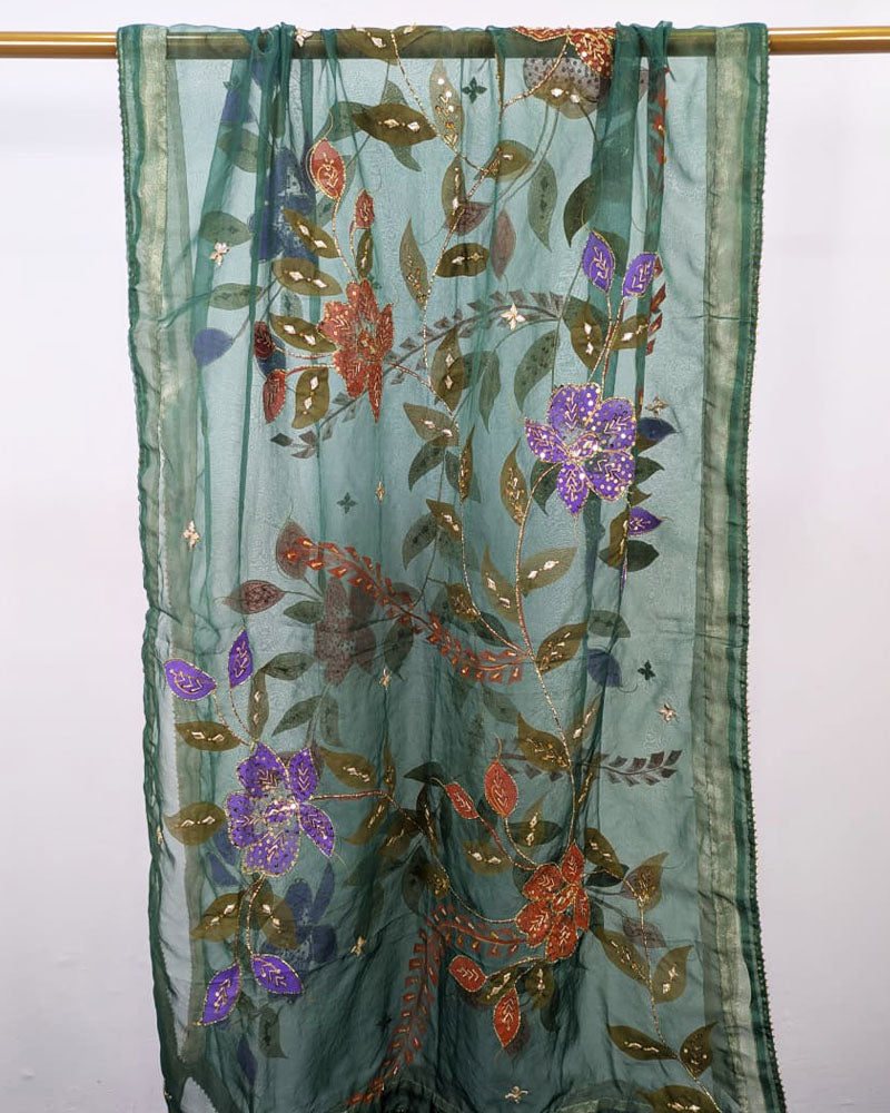 Organza with Oil Paint, Gotta & Stone Work Dupatta