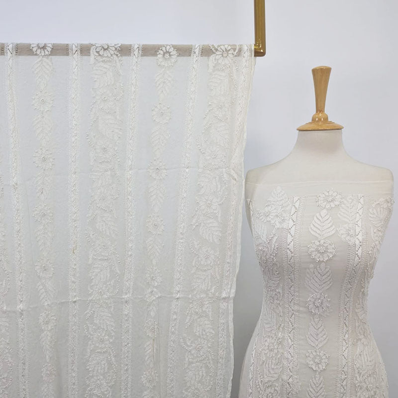 Premium Handmade Pure China Crinkle with Tarkashi + Shadow Work Dyeable 2pc Unstitched Suit