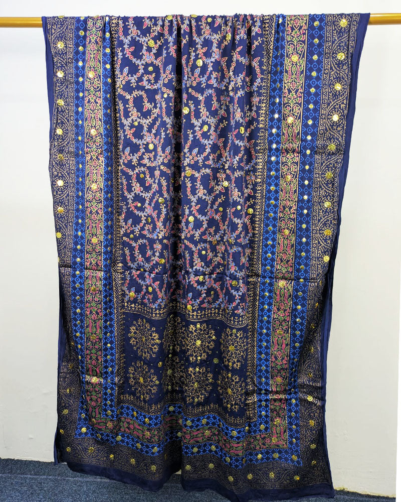 Fancy Silk with Handmade Golden Mukesh + Block Print Work Dupatta