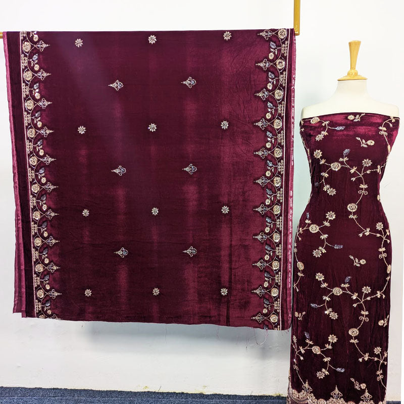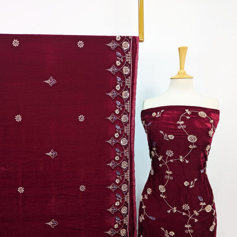Fancy Velvet with Cut Dana Work Shirt Dupatta 2PC Unstitched