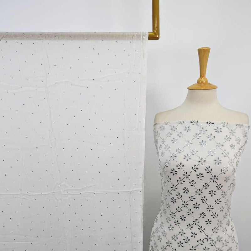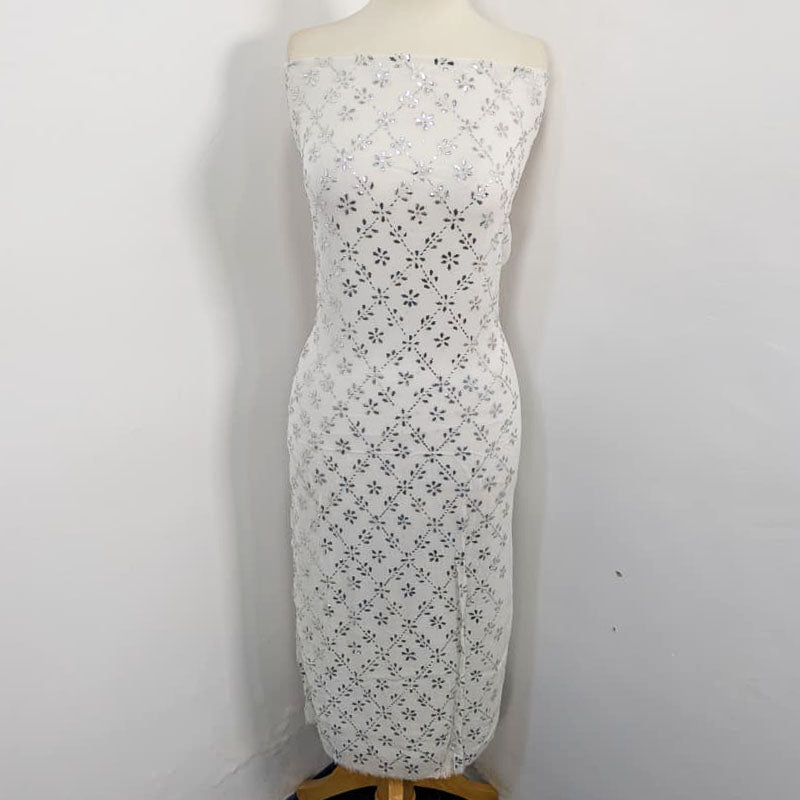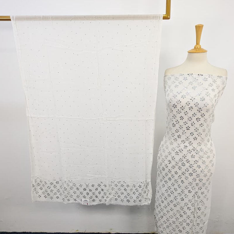 Fancy Bamber Chiffon with Full Jaal Silver Mukesh Work  2PC Unstitched