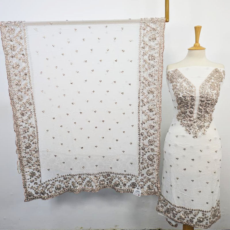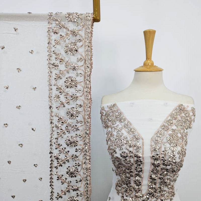 Handmade Dyeable Bamber Chiffon Gottawork with 4 Sided Border Dupatta 2 PC Unstitched