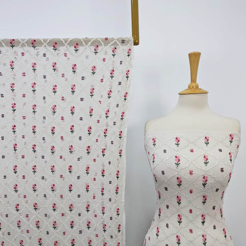 Fancy Pure China Crinkle Cross Stitch + Pakka Tanka Work Dupatta