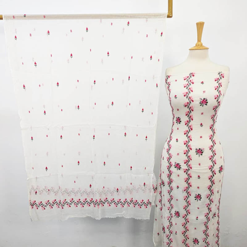 Fancy Handmade Pure China Crinkle with Multi Color Cross Stitch Dyeable In All Color 2pc Unstitched