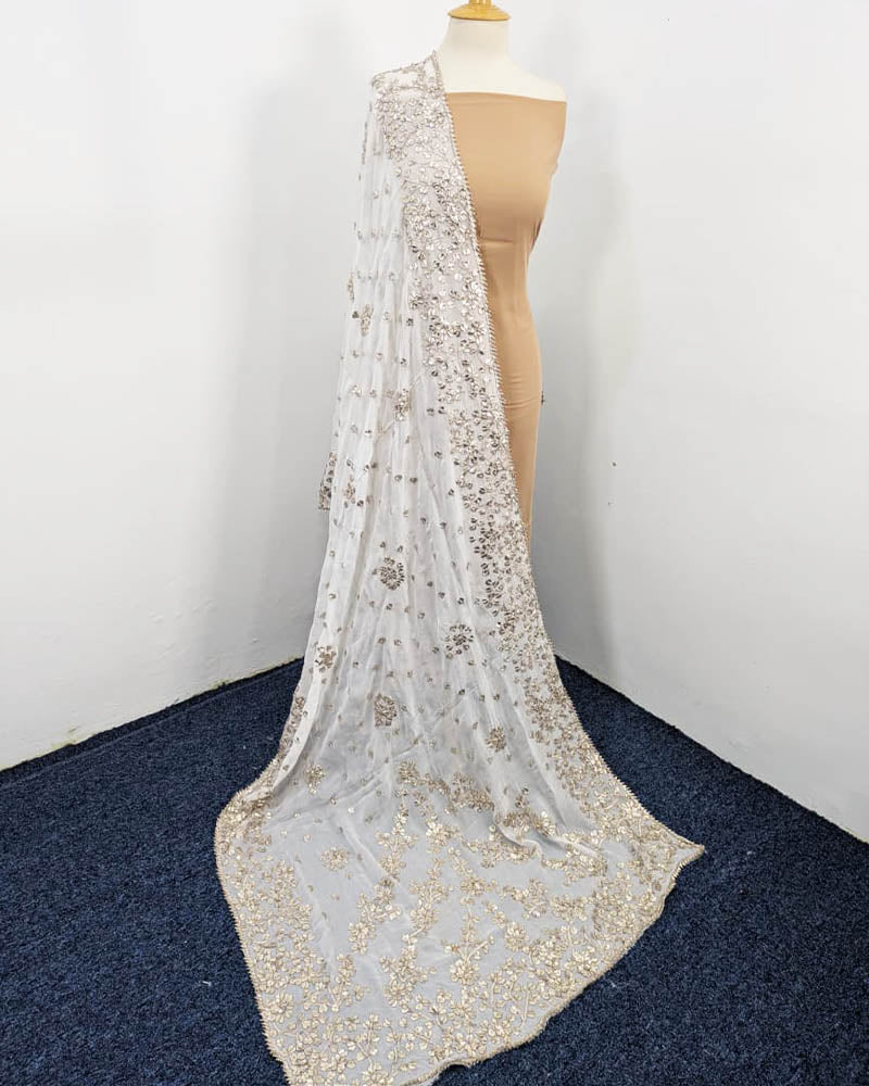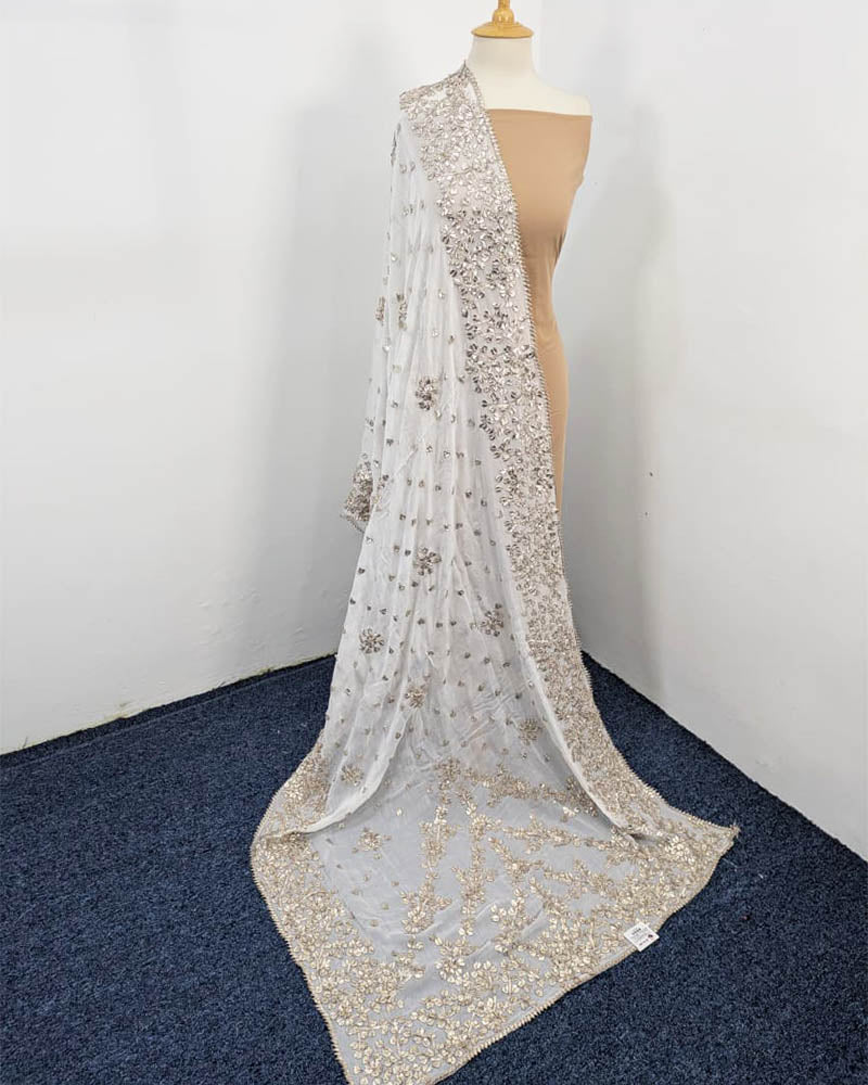 Fancy Handmade Dyeable Silk Full Jaal Gotta Work Dupatta