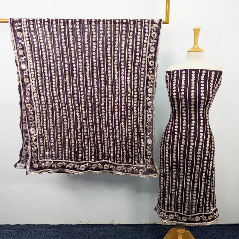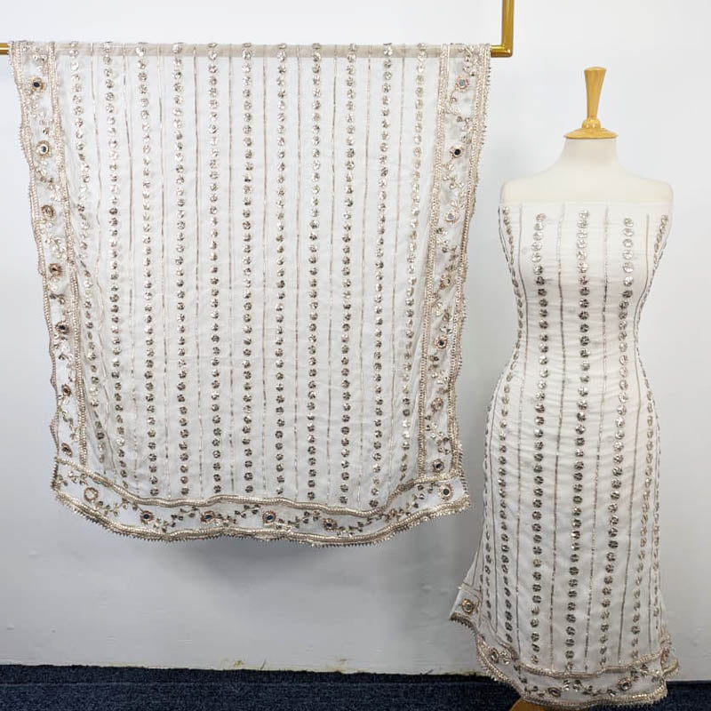 Fancy Handmade Chiffon Full Jaal Gotta +Mirror Work with 4 Sided Border Dupatta 2PC Unstitched Suit