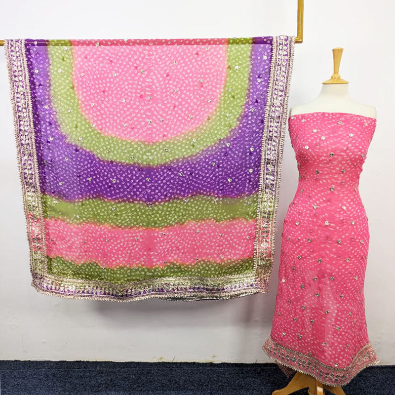 Fancy Pure China Crinkle with Gotta + Chunri Work Shirt With Multi Color Dupatta