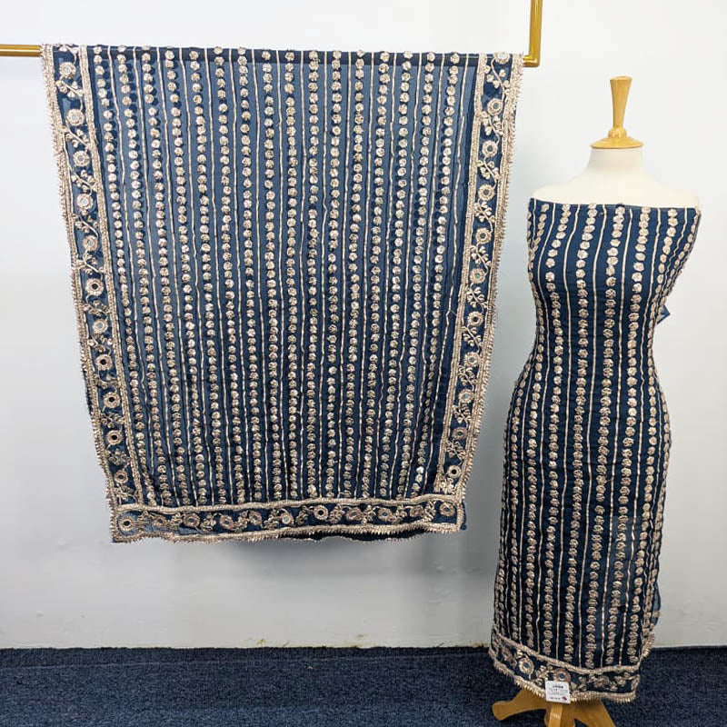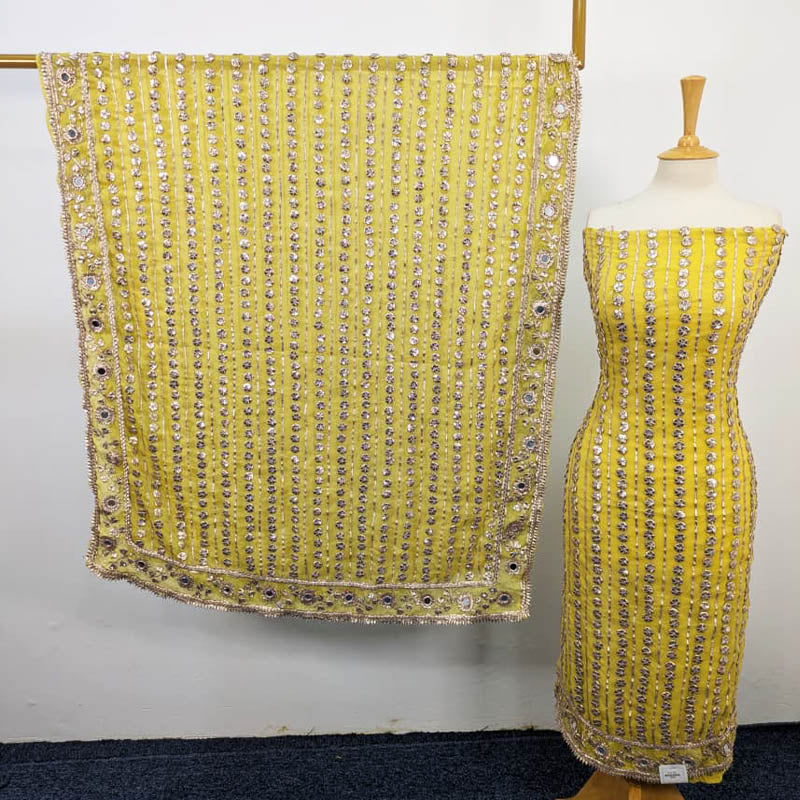 Fancy Handmade Full Jaal Gotta +Mirror Work Chiffon 2PC Unstitched
