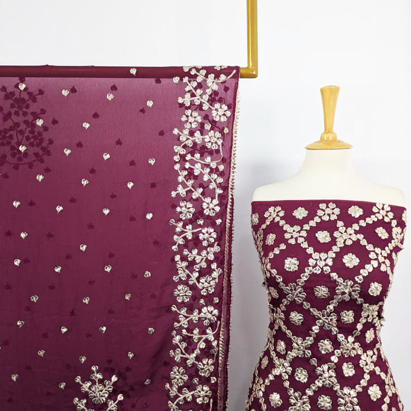 Fancy Handmade Chiffon Full Jaal Gotta Work with 4 Sided Border Dupatta 2PC Unstitched Suit