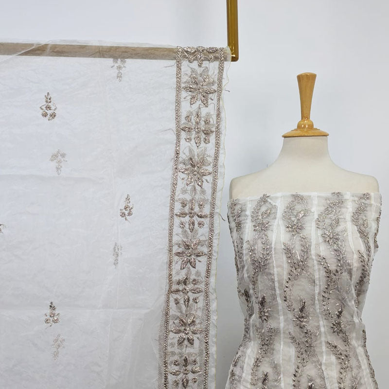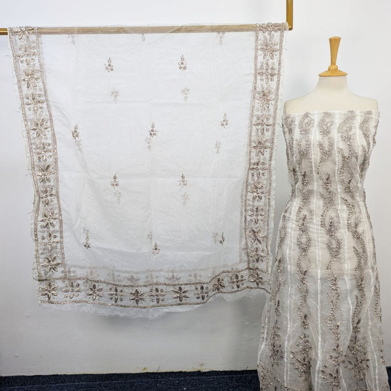 Fancy Organza Gotta Work Frock with 4 Sided Border Dupatta ( Dyeable in All Colors )