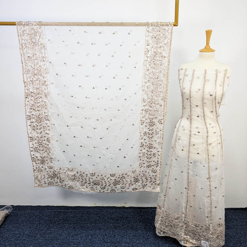 Fancy Dyeable Organza Full Jaal Gotta Work  Frocks 2PC Semi Stitched