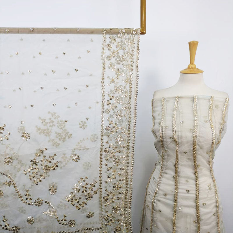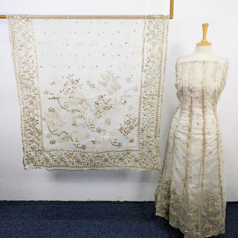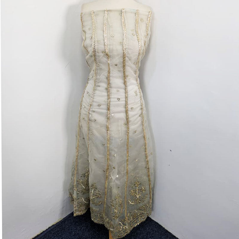 Handmade Heavy Golden Gotta Work Dyeable Organza Frock 2Pc Unstitched