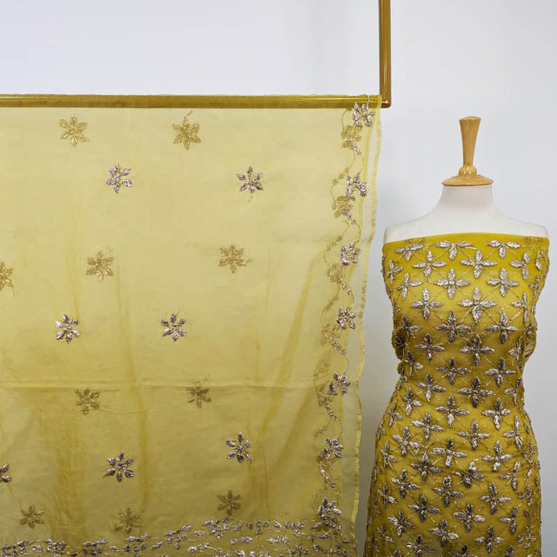 Fancy Organza with Handmade LCD Gotta Work Shirt & 4 Sided Border Dupatta 2PC Unstitched