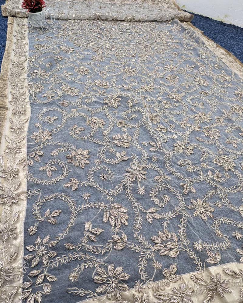 Fancy Dyeable Organza with Handmade LCD Gotta Work & 4 Sided Lappa Kiran Lace Border Dupatta