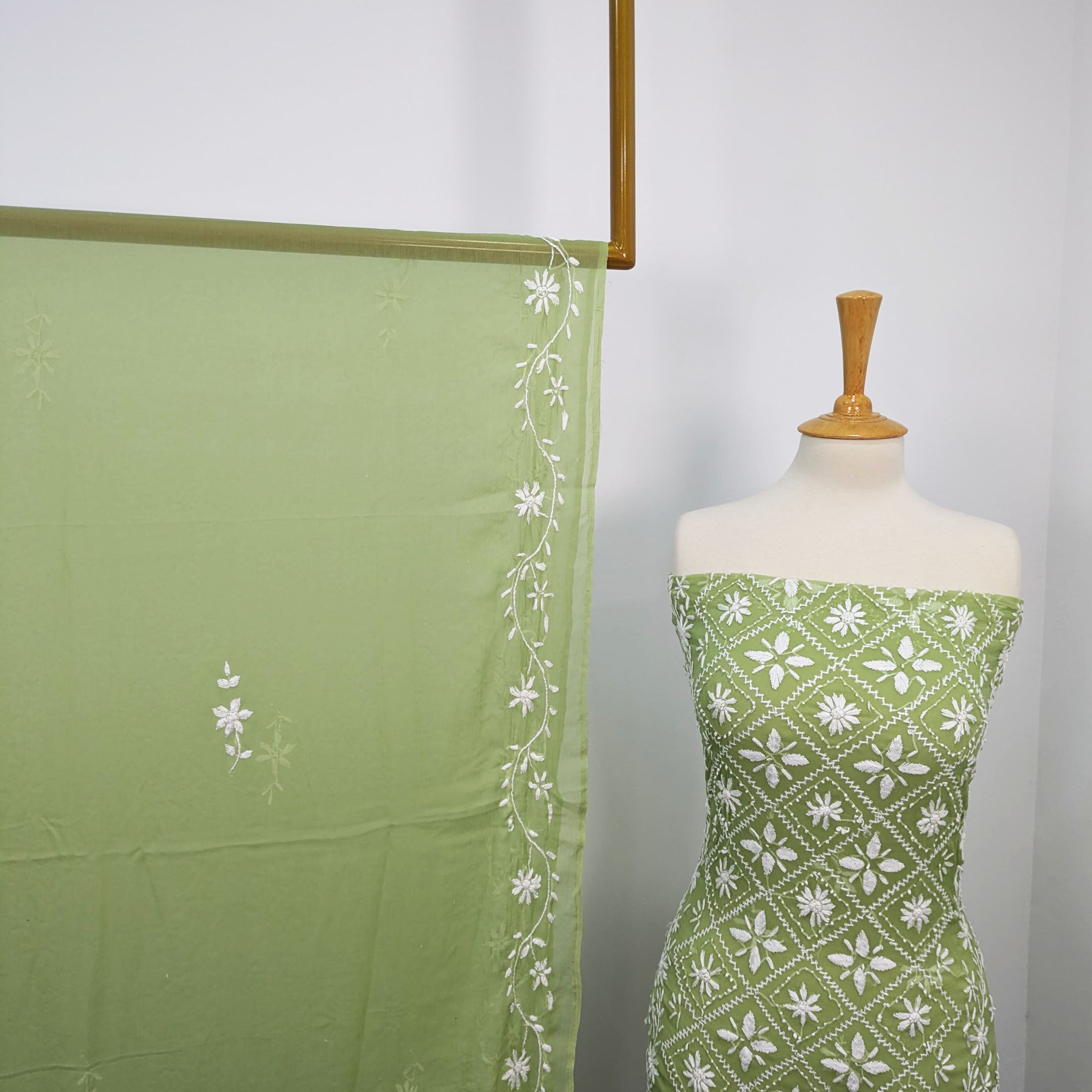 Handmade Pakka Tanka Embroidered Chiffon 2pc Unstitched