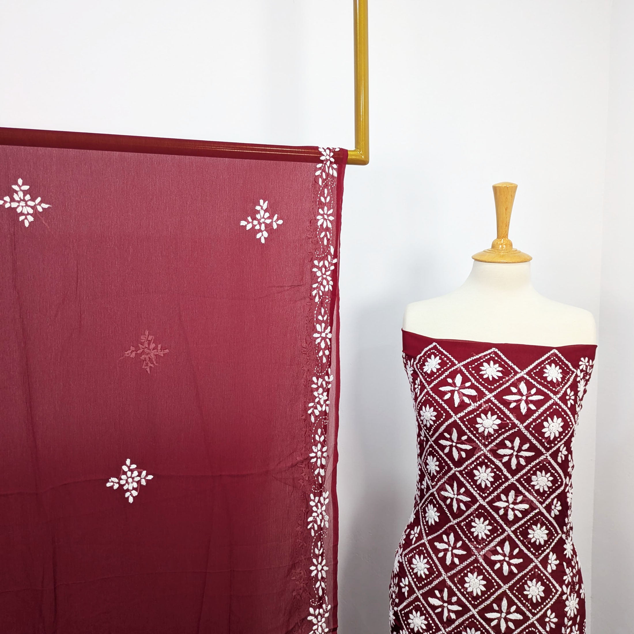 Handmade Pakka Tanka Embroidered Chiffon 2pc Unstitched
