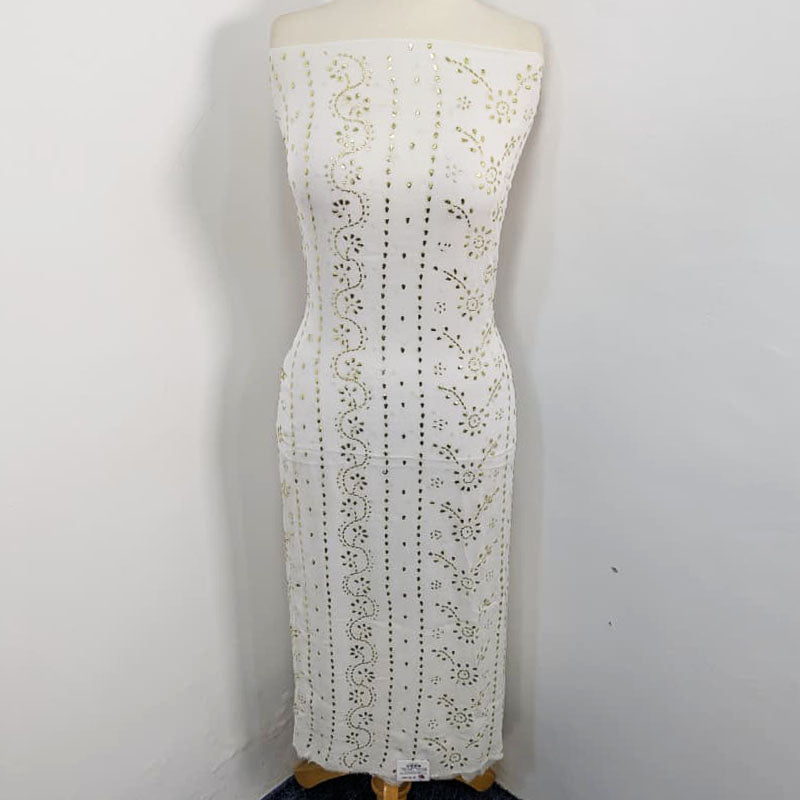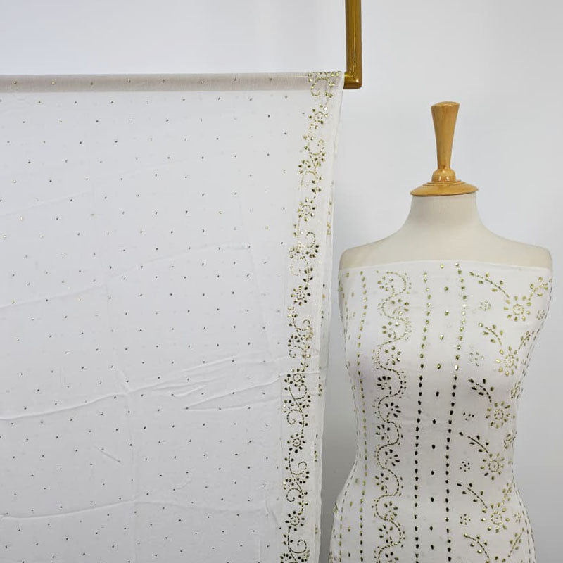 Fancy Bamber Chiffon with Full Jaal Golden Mukesh Work  2PC Unstitched