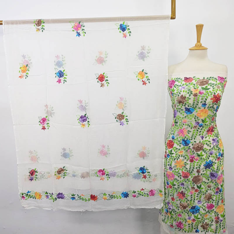 Fancy Handmade Pure China Crinkle with Kacha Pakka Tanka Full Jaal Work Dyeable 2pc Unstitched Suit