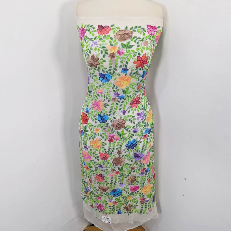 Handmade Pure China Crinkle with Multi Colour Kacha Pakka Tanka Full Jaal Work (Dyeable)
