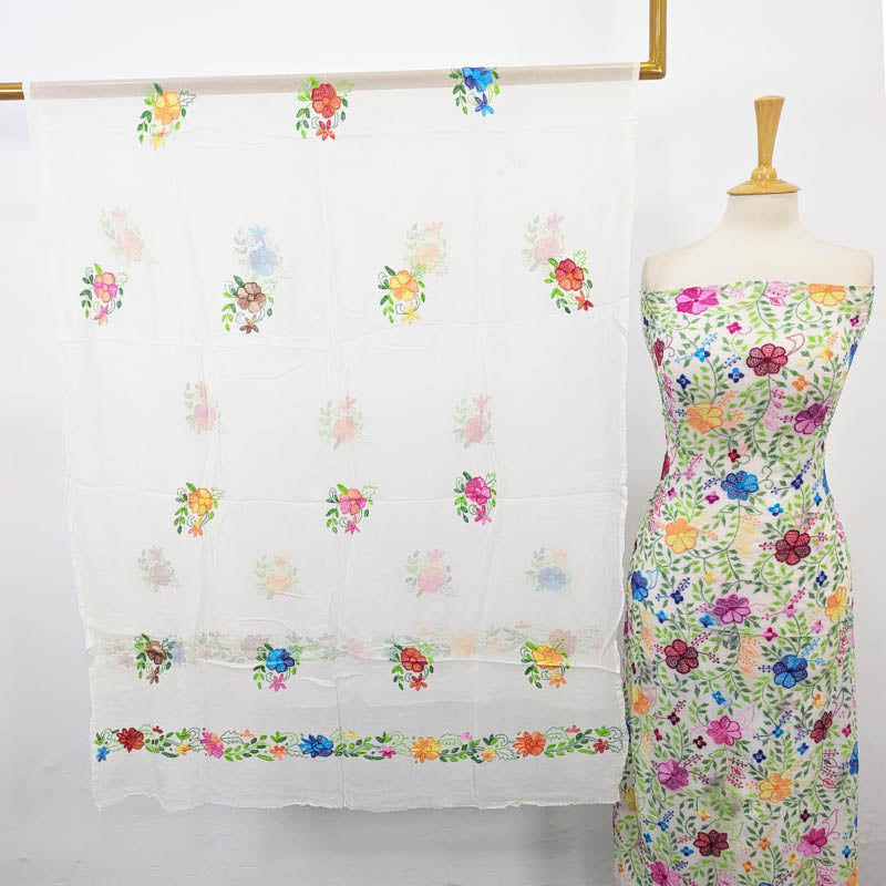 Fancy Handmade Pure China Crinkle with Kacha Pakka Tanka Full Jaal Work Dyeable 2pc Unstitched Suit
