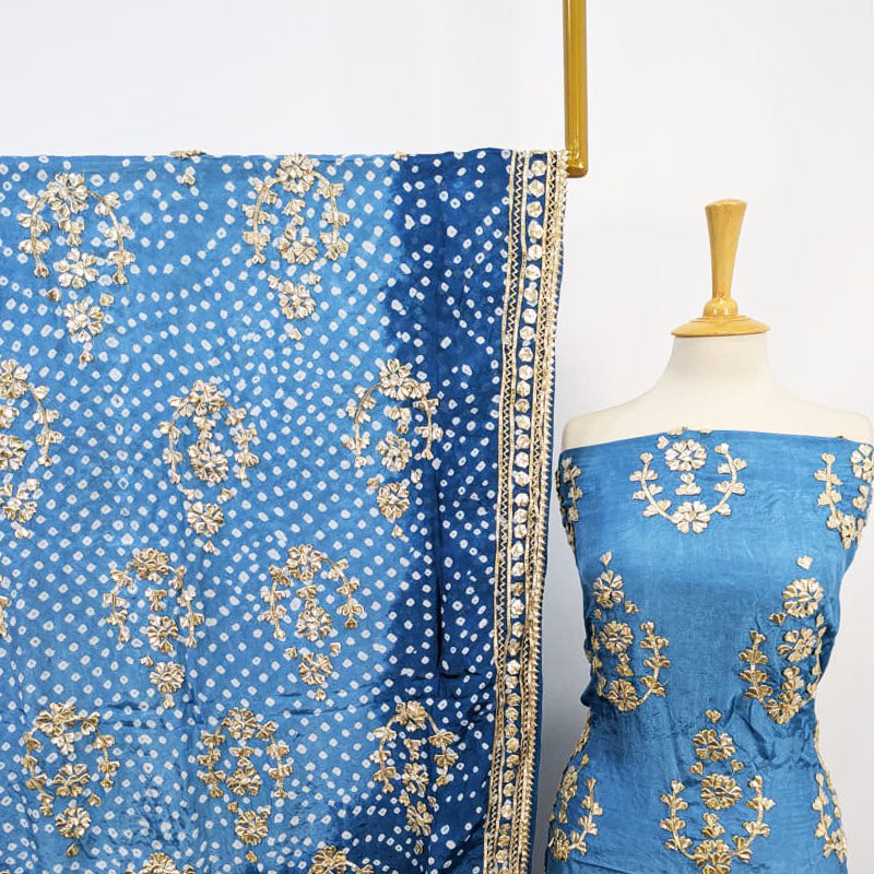 Handmade Silk with Golden Gotta Work & Chunnri Dupatta 2PC Unstitched