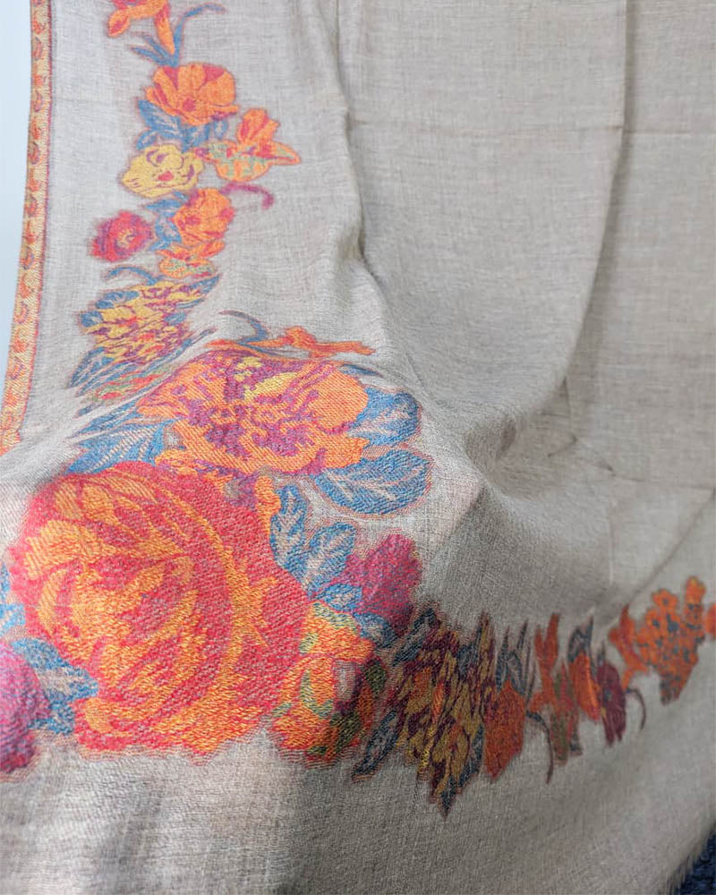 Luxury 3D Floral Work China Wool Shawl (Ready To Wear)