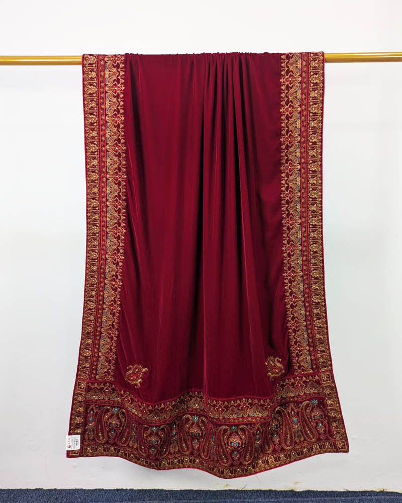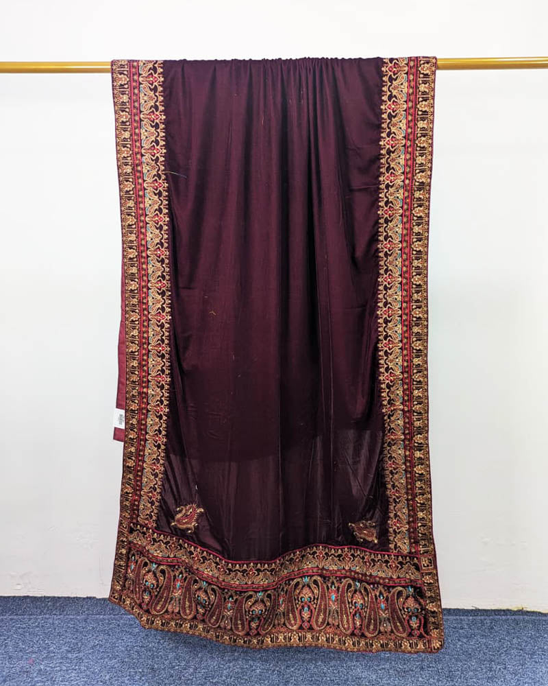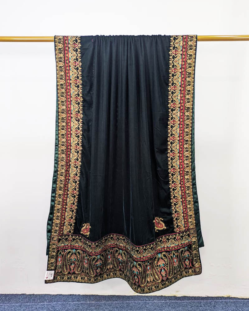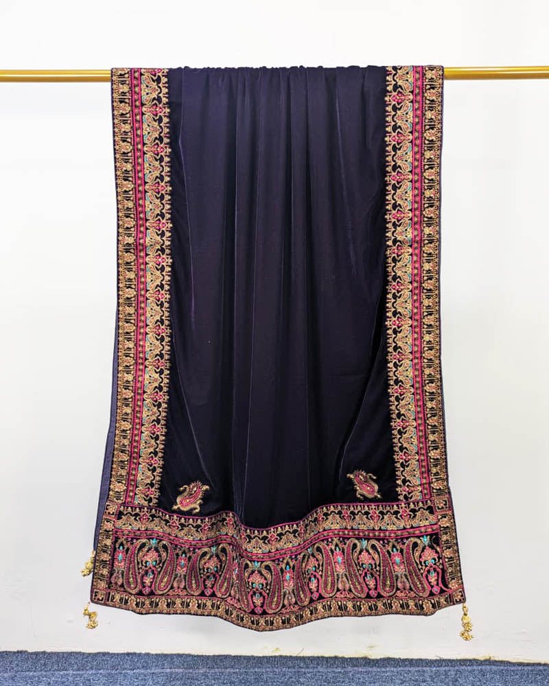 Fancy Velvet Shawl with Bareeza Style Border Work