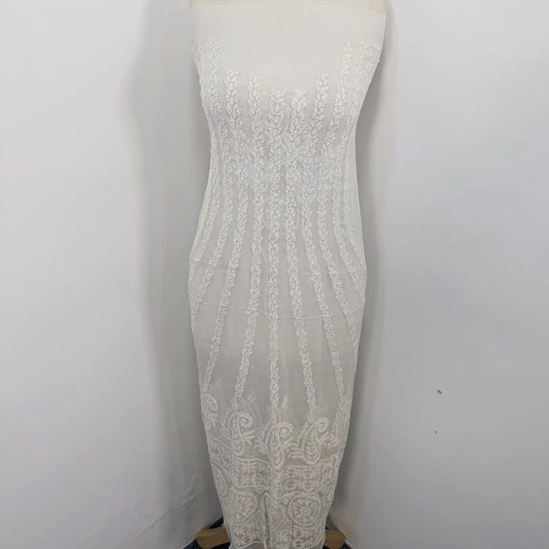 Fancy Handmade Pure China Crinkle with Chikan Kari + Kali Work Frock 2pc    Unstitched (Dyeable in All Colors)