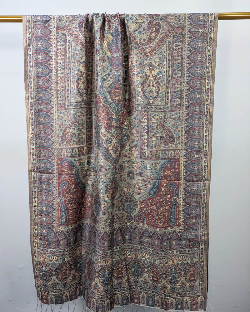 Fancy Pure Indian Kani Silk Zari Work Shawl (Ready To Wear)