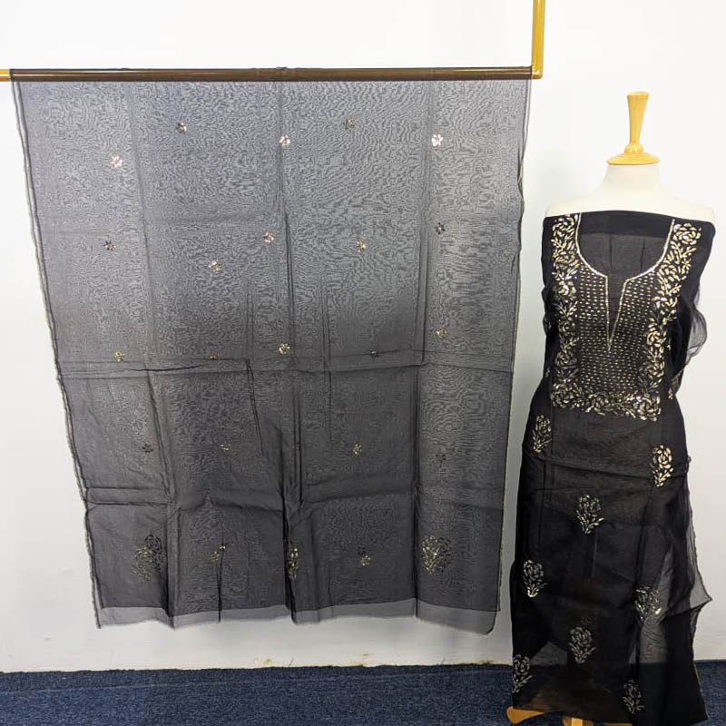 Organza with Indian Rose Gold Mukesh Work 2PC Unstitched