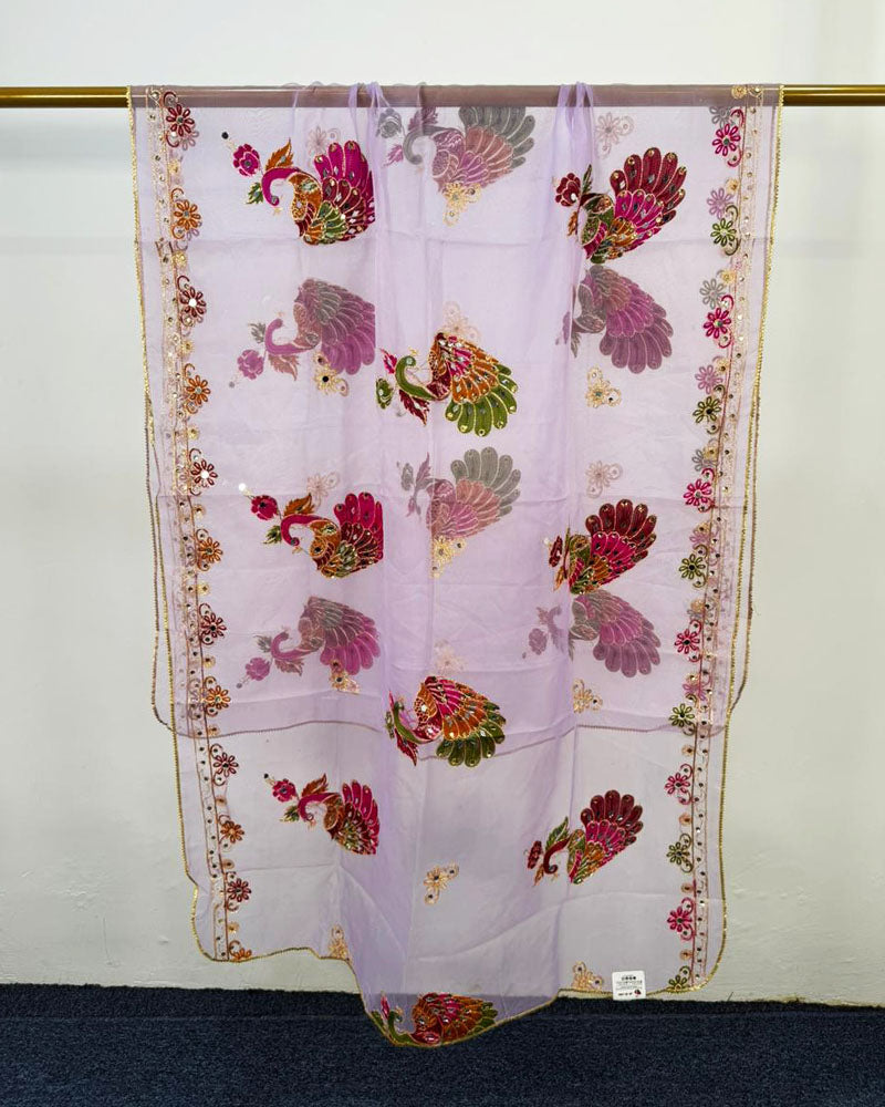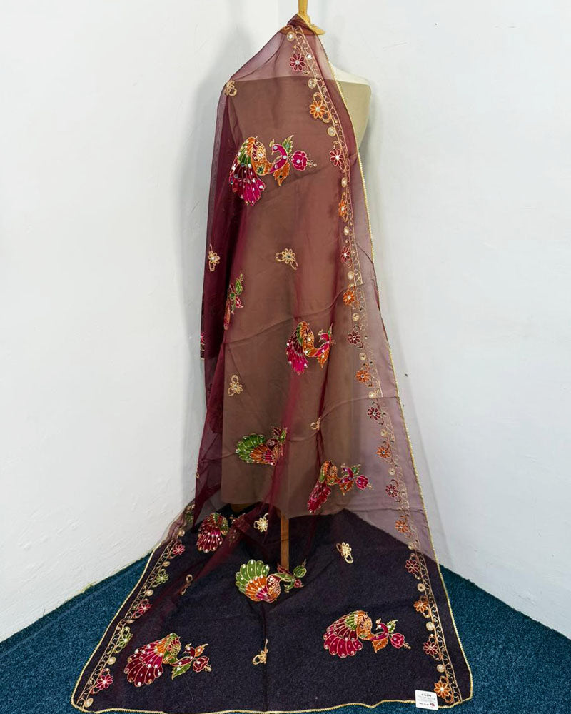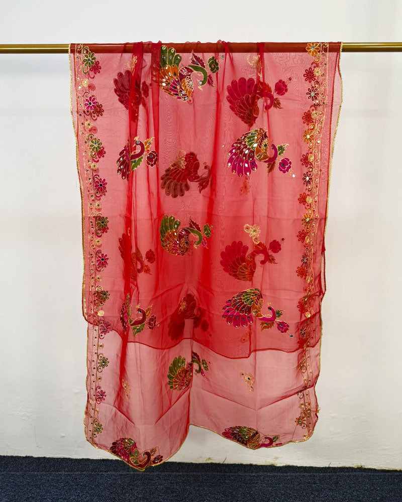 Fancy Peacock Style Embroidered Organza with Mirror Work Dupatta (Ready To Wear)