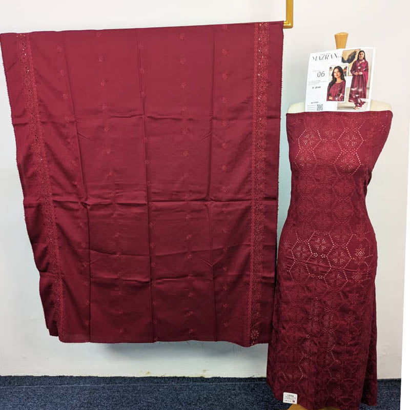 Fancy Embroidered Dhanak  3PC Unstitched  Mazran 0.4