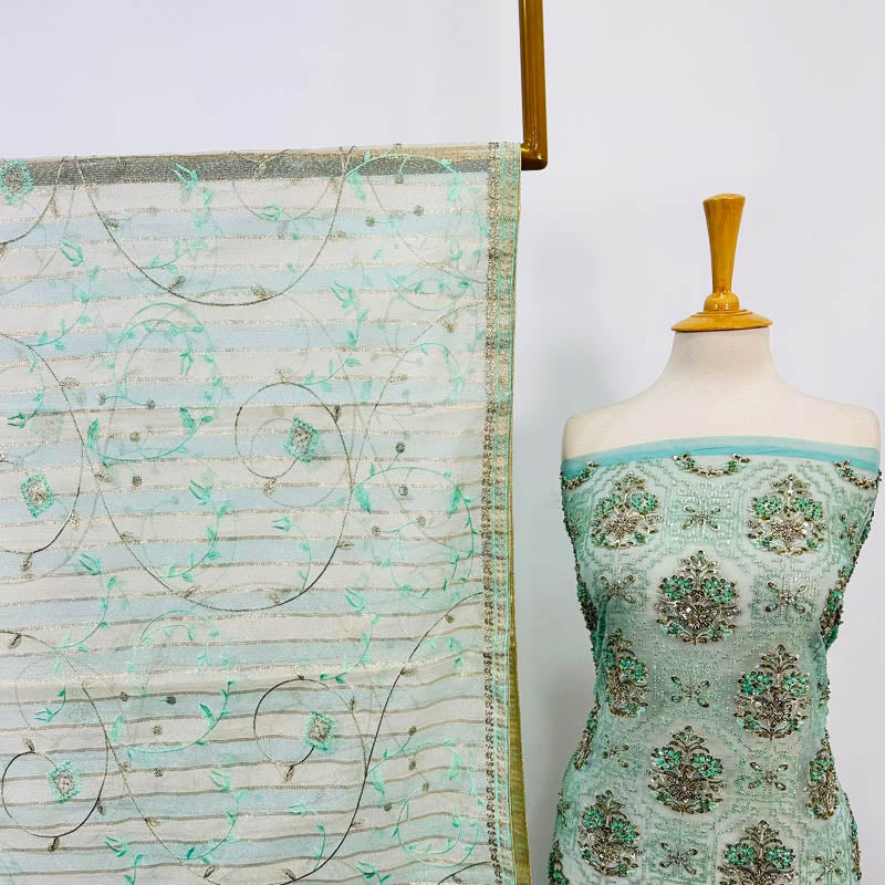 Fancy Embroidered Organza with Masuri Dupatta 2PC Unstitched