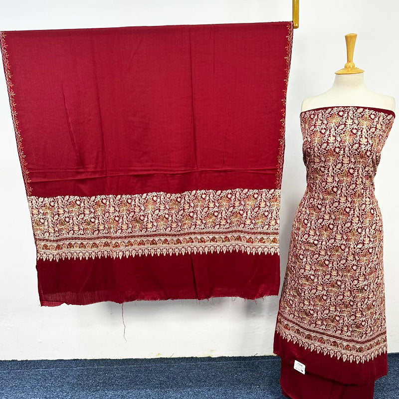 Luxury Embroidered Pure Wool Pashmina 3PC Unstitched Suit