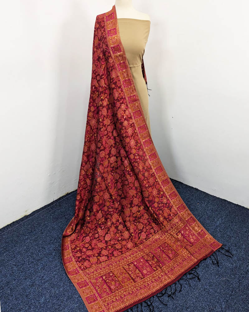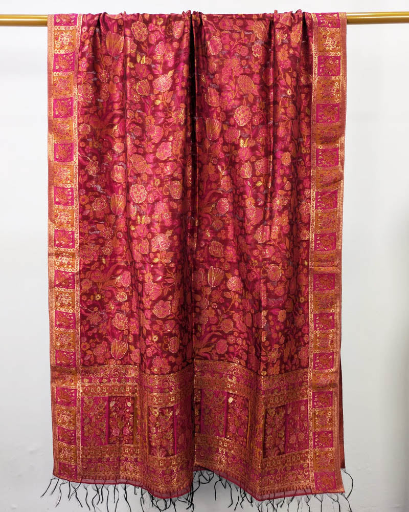 Fancy Pure Indian Kani Silk Zari Work Shawl (Ready To Wear)