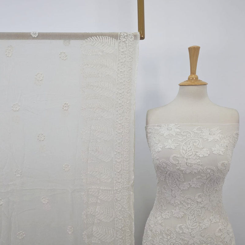 Pure China Crinkle with Chikankari + Shadow Work Dupatta