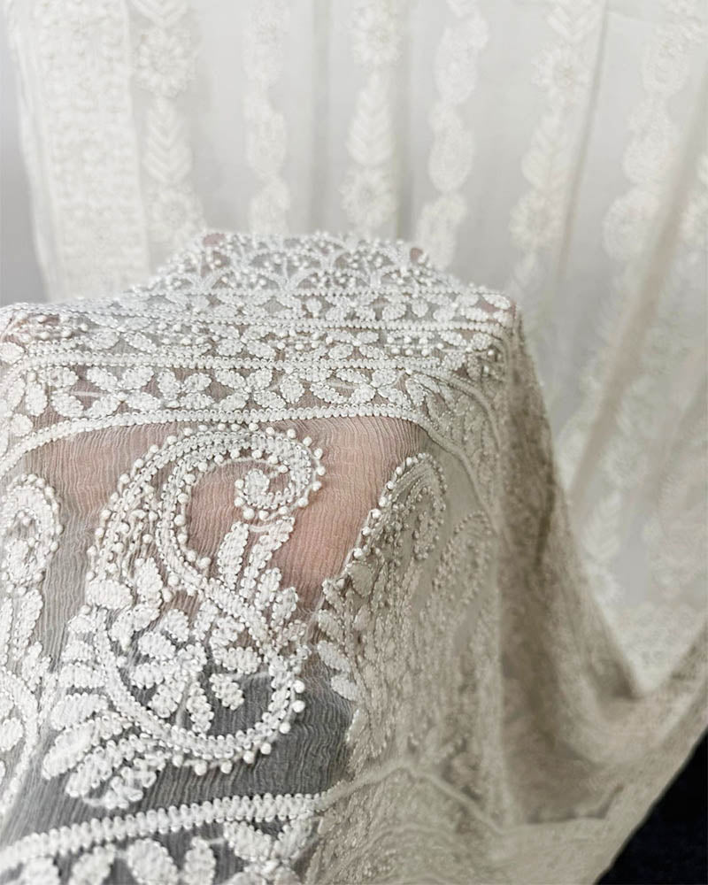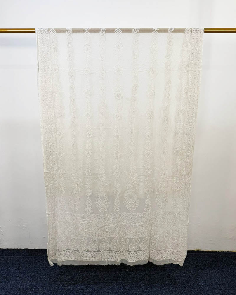 Fancy Handmade Full Jaal Chikankari Work Pure China Crinkle Dyeable Dupatta (Ready To Wear)