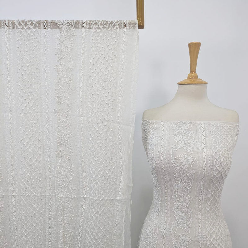 Handmade Pure China Crinkle with Tarkashi Shadow Work (Dyeable in All Colors)